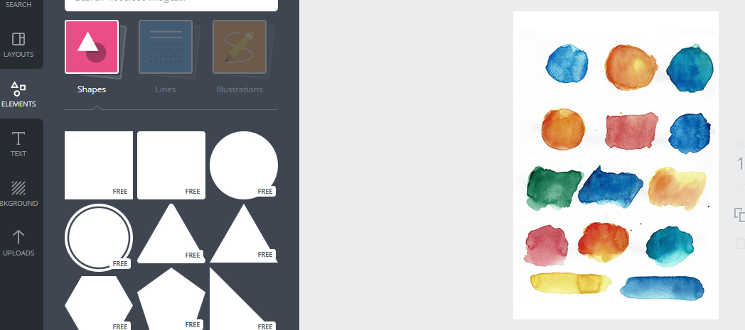 - jeśli chcesz do etykietek dodać jakieś obwódki czy ramki kliknij po lewej 'elements’ i 'shapes’ i wybierz jakikolwiek kształt wpadnie Ci w oko, dopasuj wielkością, wybierz kolor (kwadracik nad projektem, trochę po lewej stronie) i gotowe 🙂