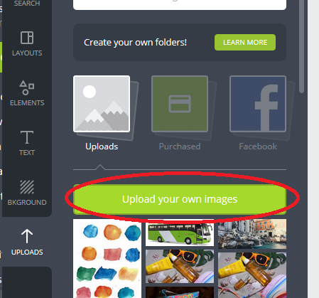 - po lewej kliknij 'uploads’ i ’ upload your own design’, wybierz obraz etykietek.