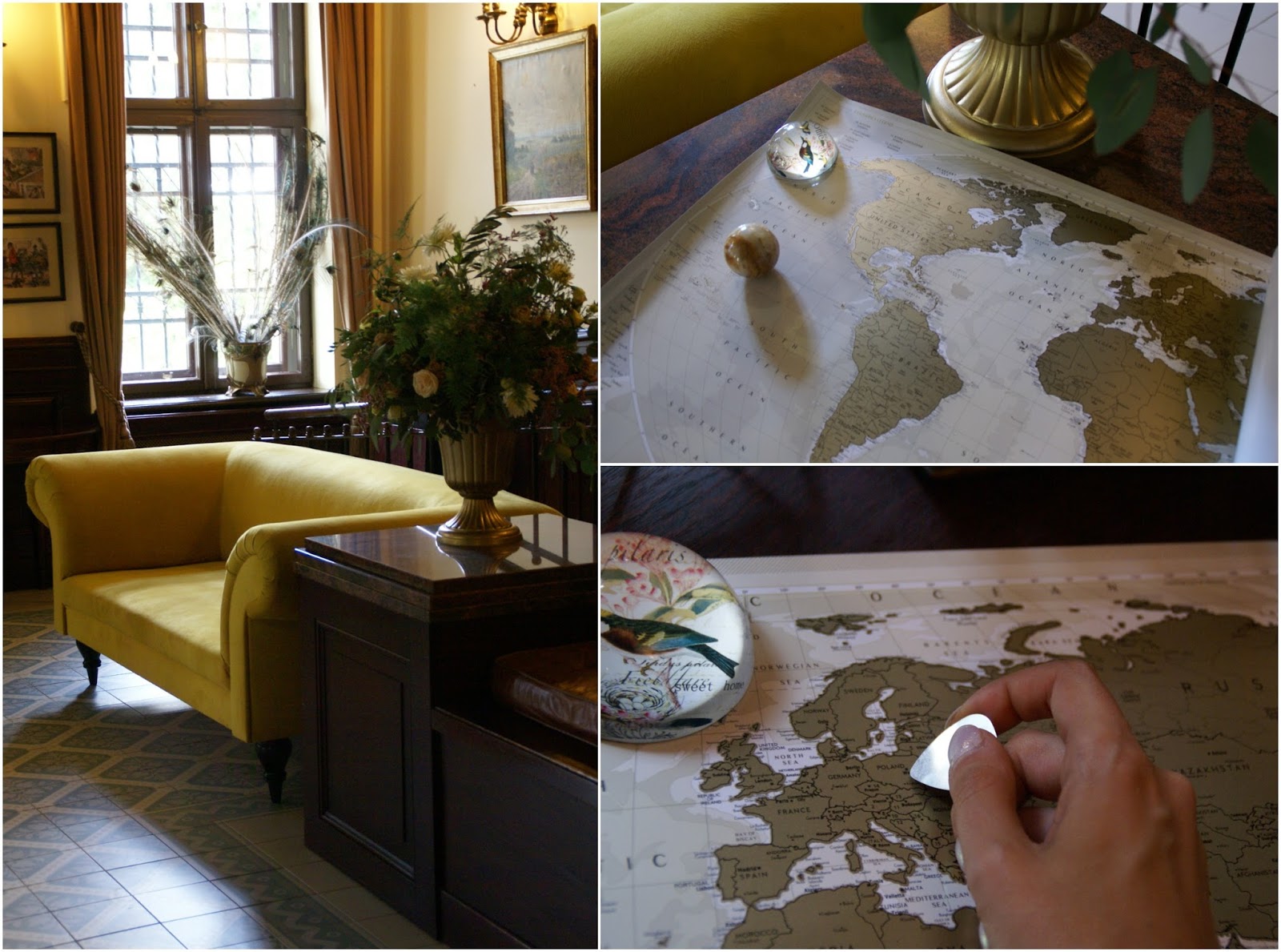 Z mapami typu zdrapka pierwszy 'kontakt’ miałam kilka lat temu – po wielu, wielu godzinach szukania prezentu świątecznego dla bliskiego krewnego wreszcie natrafiłam na prezent idealny – piękną, złotą mapę świata, na której można było zdrapywać już odwiedzone kraje. A, że osoba, którą miałam na myśli często podróżowała, to prezent rzeczywiście był strzałem w dziesiątkę 🙂 Z resztą sama od tamtej pory marzyłam sobie o takiej oryginalnej ozdobie domu.