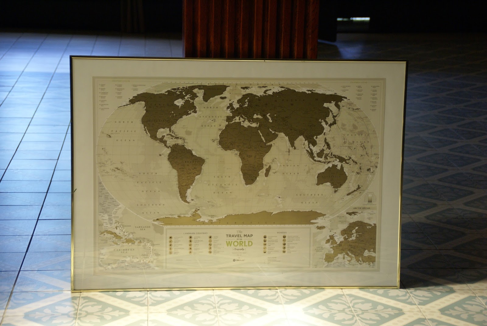 Przy pierwszej okazji wybrałam się na poszukiwania odpowiedniej ramy dla mojej mapy świata, a że wymiary ma dosyć niestandardowe to trochę mi to zajęło. Przy okazji miałam ochotę się ugryźć jak zobaczyłam o wiele prostszy i tańszy sposób na powieszenie takiej mapy u Klaudii z Notatnika Kreatywnego 😛 Jeśli rama jest dla Was zbyt 'formalna’ na mapę to lećcie obejrzeć jej alternatywę 🙂