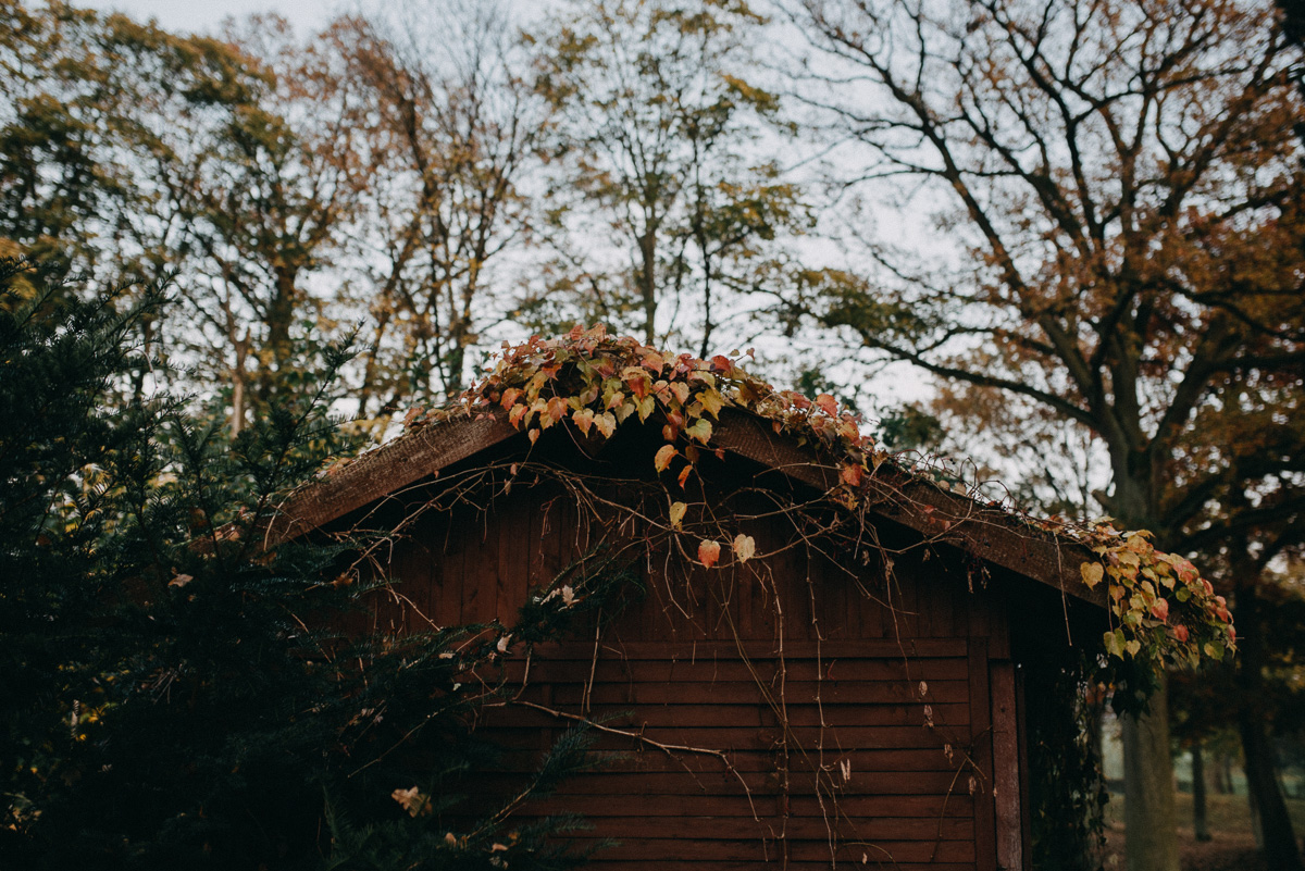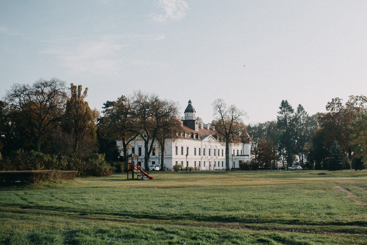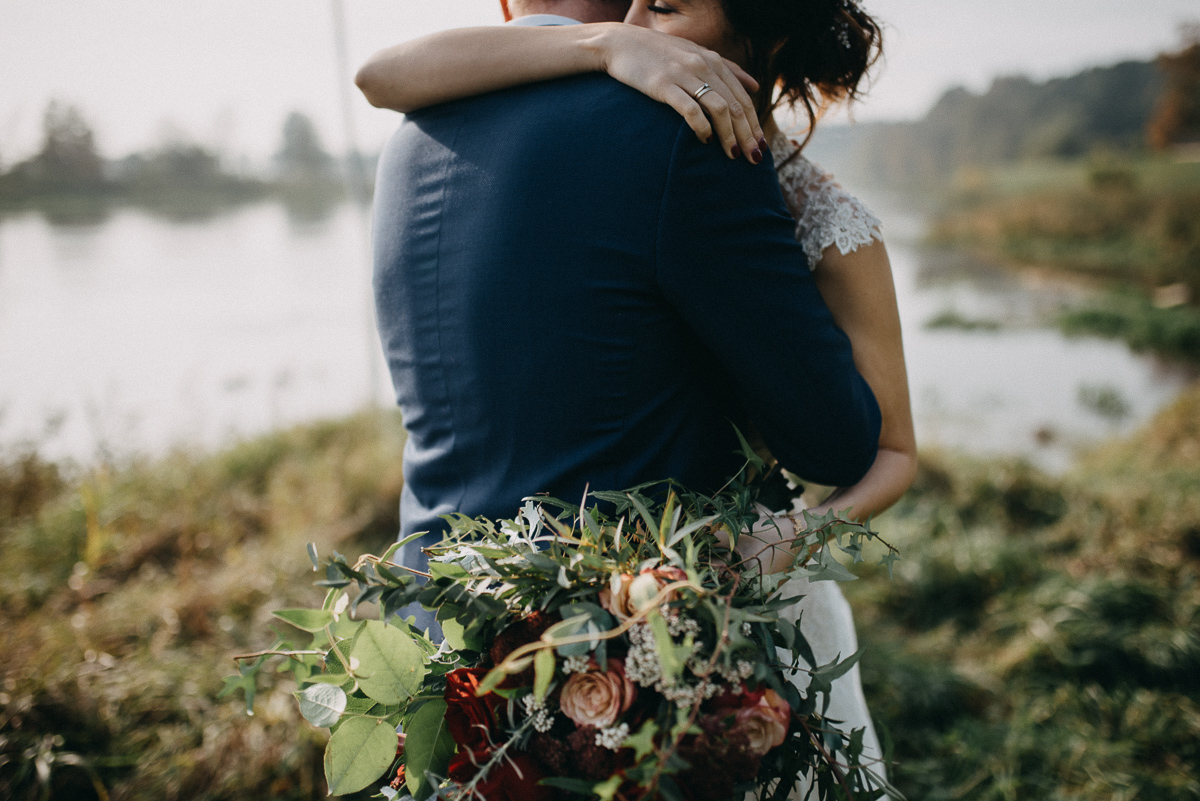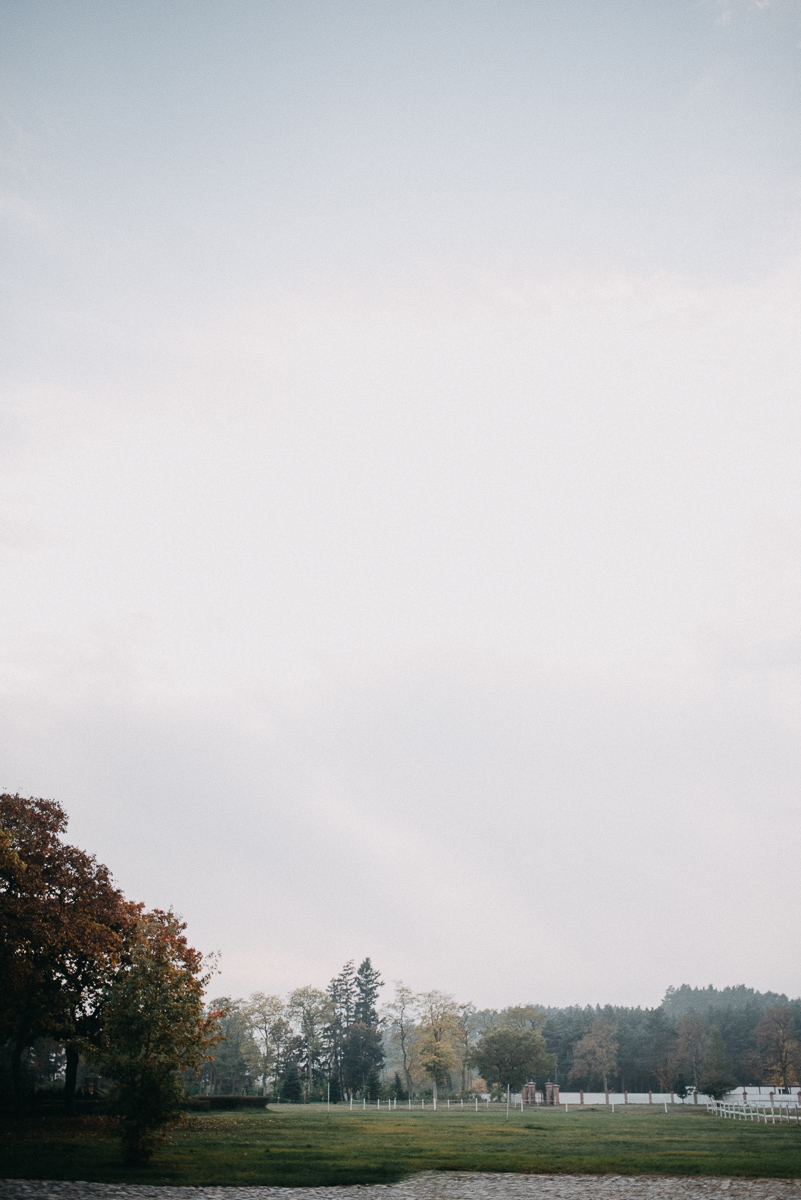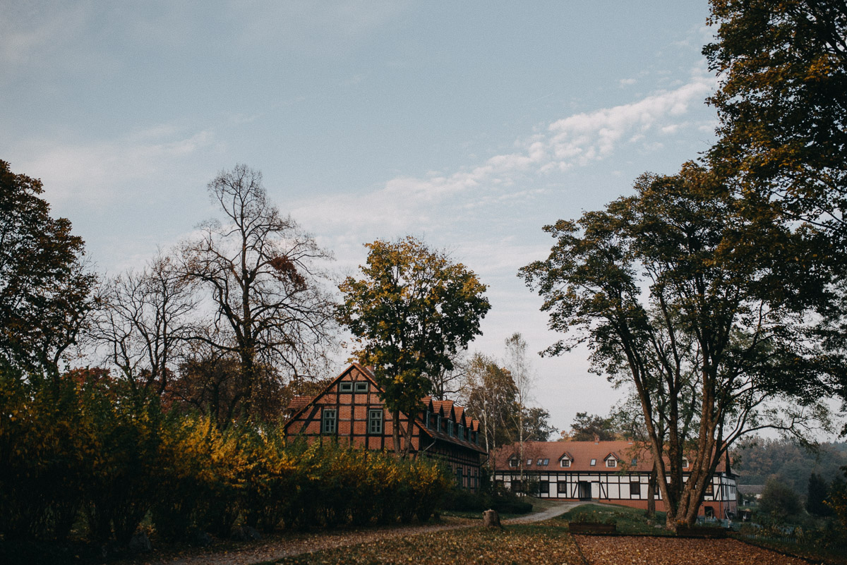 Z sesją trochę nam się zeszło, nie wiem czy pamiętacie, ale ślub był na początku sierpnia 😛 Jednak, jak to mówią, nie ma tego złego… Sesja jesienią naszym zdaniem ma dużo więcej uroku niż w pełni lata, wiecie, te wszystkie kolory dookoła… :)) No coś pięknego! Do tego szczęście sprzyjało i udało nam się też trafić na dobrą pogodę – w ciągu całego deszczowego tygodnia wybraliśmy dzień, który z zaskoczenia okazał się słoneczny (mimo, że aż do wyjazdu z domu na zewnątrz było pochmurno i bardzo mglisto).  Plener robił nam inny fotograf niż na ślubie, główną przyczyną był fakt, że nie do końca byliśmy zadowoleni ze zdjęć ślubnych – oczywiście jest wśród nich wiele, które bardzo lubimy, generalnie są też dobre technicznie, ale zabrakło nam w nich trochę więcej spontanicznych ujęć, fajnych detali i przede wszystkim ciekawych pomysłów, szkoda, że fotografka nie zaangażowała gości do jakichś fajnych zdjęć 😉