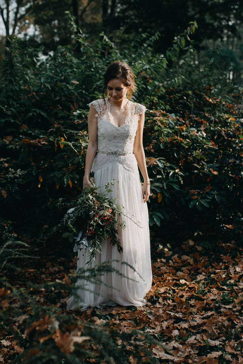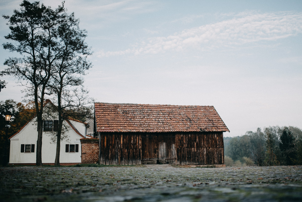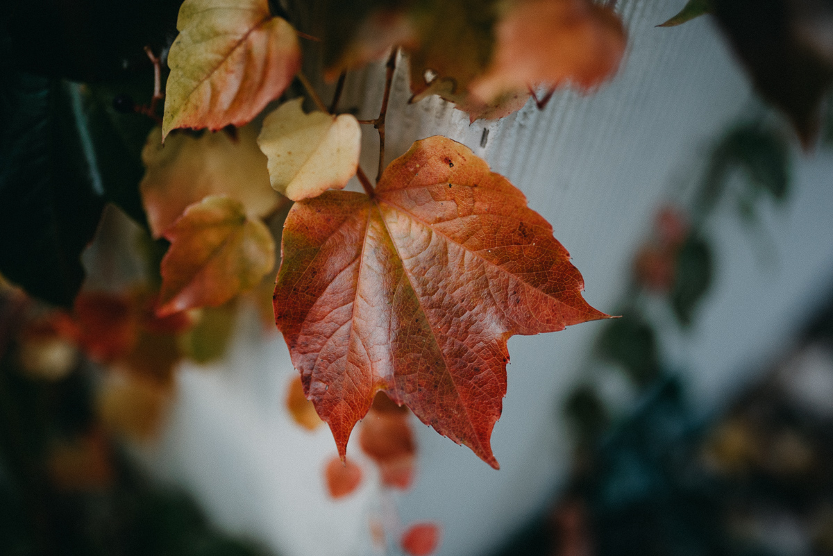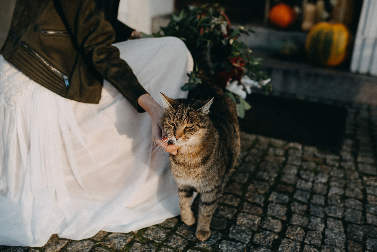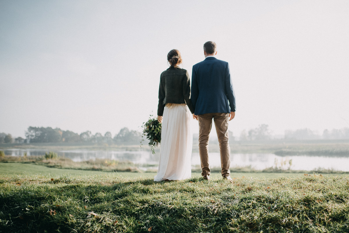 Z sesją trochę nam się zeszło, nie wiem czy pamiętacie, ale ślub był na początku sierpnia 😛 Jednak, jak to mówią, nie ma tego złego… Sesja jesienią naszym zdaniem ma dużo więcej uroku niż w pełni lata, wiecie, te wszystkie kolory dookoła… :)) No coś pięknego! Do tego szczęście sprzyjało i udało nam się też trafić na dobrą pogodę – w ciągu całego deszczowego tygodnia wybraliśmy dzień, który z zaskoczenia okazał się słoneczny (mimo, że aż do wyjazdu z domu na zewnątrz było pochmurno i bardzo mglisto).  Plener robił nam inny fotograf niż na ślubie, główną przyczyną był fakt, że nie do końca byliśmy zadowoleni ze zdjęć ślubnych – oczywiście jest wśród nich wiele, które bardzo lubimy, generalnie są też dobre technicznie, ale zabrakło nam w nich trochę więcej spontanicznych ujęć, fajnych detali i przede wszystkim ciekawych pomysłów, szkoda, że fotografka nie zaangażowała gości do jakichś fajnych zdjęć 😉