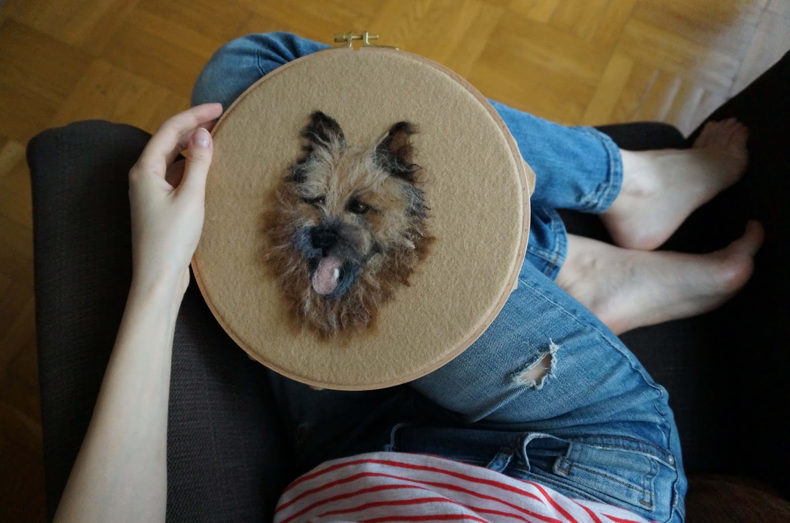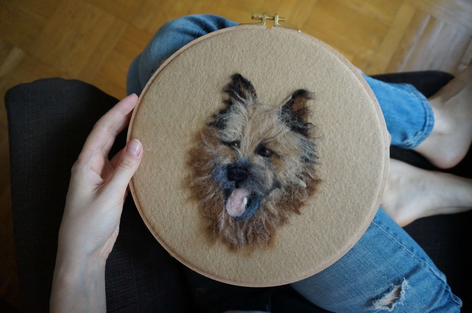 Dzisiaj coś zupełnie dla mnie nowego 🙂 Co jakiś czas przewijały mi się na instagramie i pinterest ciekawe pomysły z użyciem tamborków (te drewniane obręcze do haftowania), jednym z nich było filcowanie na płasko. Od razu mi to w oko wpadło i byłam zdecydowana, że przy odrobinie wolnego czasu spróbuję :)) Majowy weekend w pełni, więc czas się znalazł, wełna była, tamborek też, a i modela udało mi się dość szybko wybrać 😛