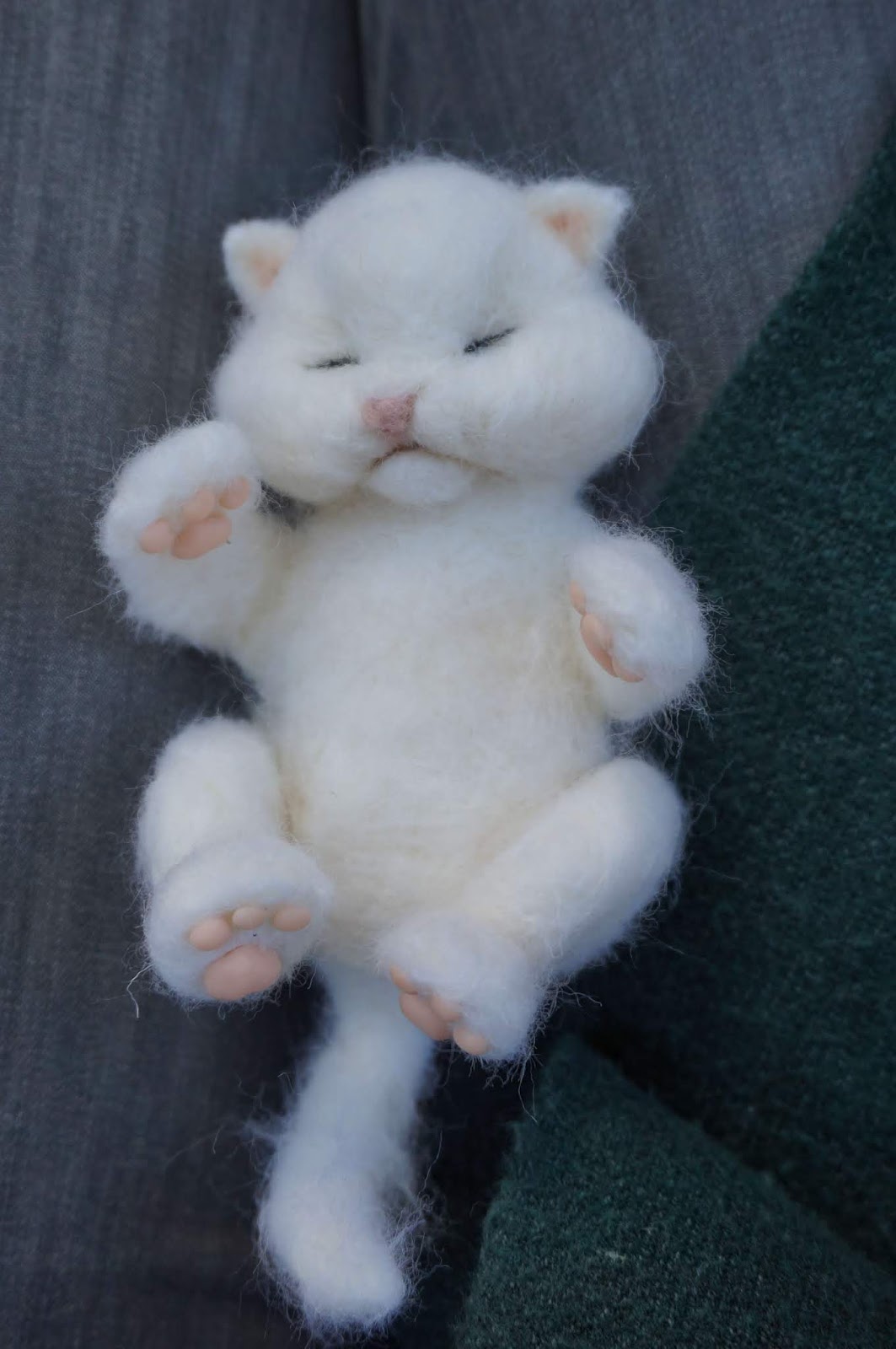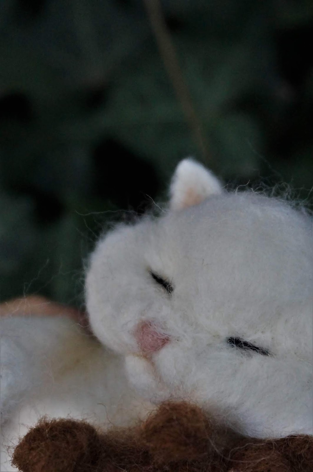 Śpiący kotek z filcu